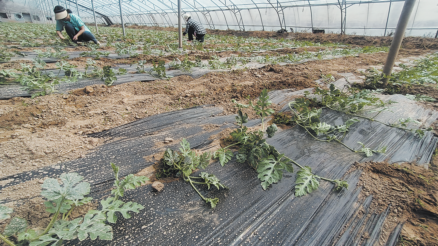 近日,單縣高韋莊鎮馬寨村智能溫室大棚里,西瓜秧進入定向期。“按照慣例,現在這樣的西瓜應該早就結瓜了,個體也要有一二斤重了。”技術員王光臣說,隨著農業科技的發展進步,這些年西瓜種植呈現“一潮一笨”,趕在谷雨時節前成熟上市的為“潮”,而在立夏時節成熟上市的為“笨”。今年,馬寨村種植的8424、美都等優質品種瓜追求的是“笨”,正巧趕在春夏之交的“市場空擋”,爭取高出“平常”價格,畝均收入約3萬元,有望增收2000元。