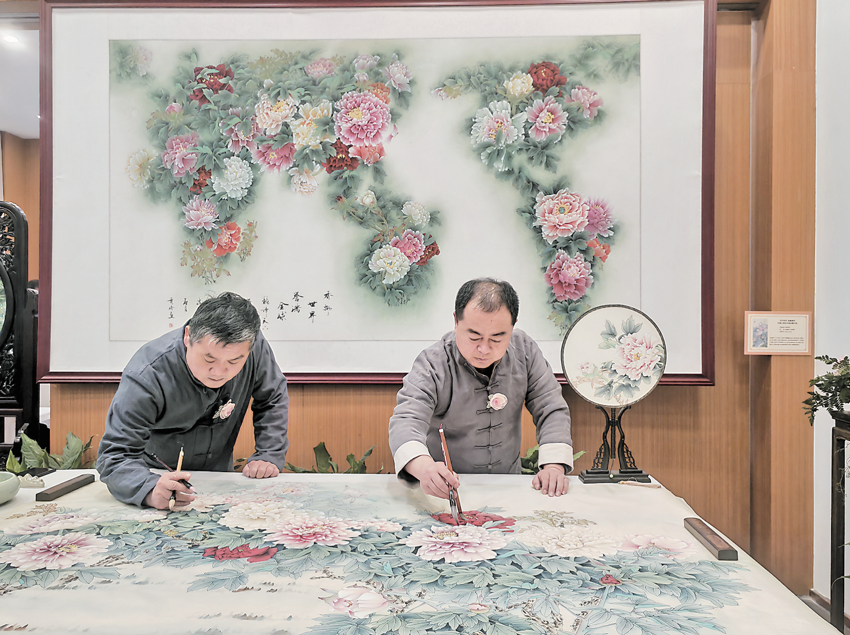 “牡丹是老百姓心目中的國花,象征著富貴、吉祥、美好。”程軍偉說,“菏澤是‘中國牡丹之都’,巨野工筆牡丹畫以菏澤牡丹為創(chuàng)作題材,在牡丹之都畫牡丹,我們擁有得天獨厚的優(yōu)勢。”