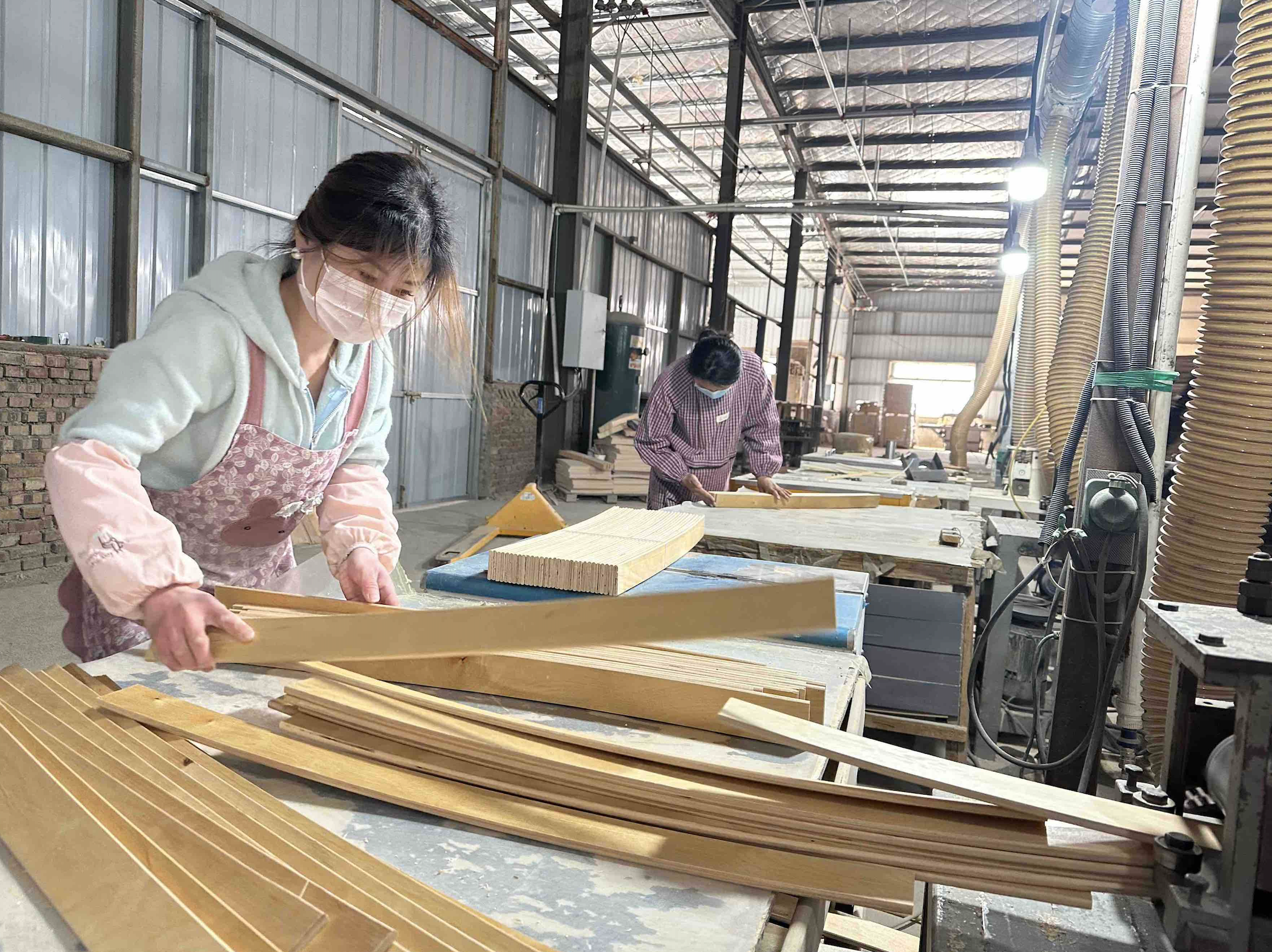 3月27日,鄄城縣什集鎮歐順木業有限公司生產車間,工人正在加緊作業。據了解,該公司主要經營木制品、家具及板件加工、銷售和原木收購,產品遠銷比利時、丹麥、法國。近年來,什集鎮立足木材資源優勢,大力發展木材加工業,形成了以板材加工、床墊加工及其他成品加工為主的產業鏈,全鎮100余家木材加工企業帶動當地8000余名群眾實現“家門口”就業,走出了一條木材產供銷“一條龍”的鄉村振興新路子。