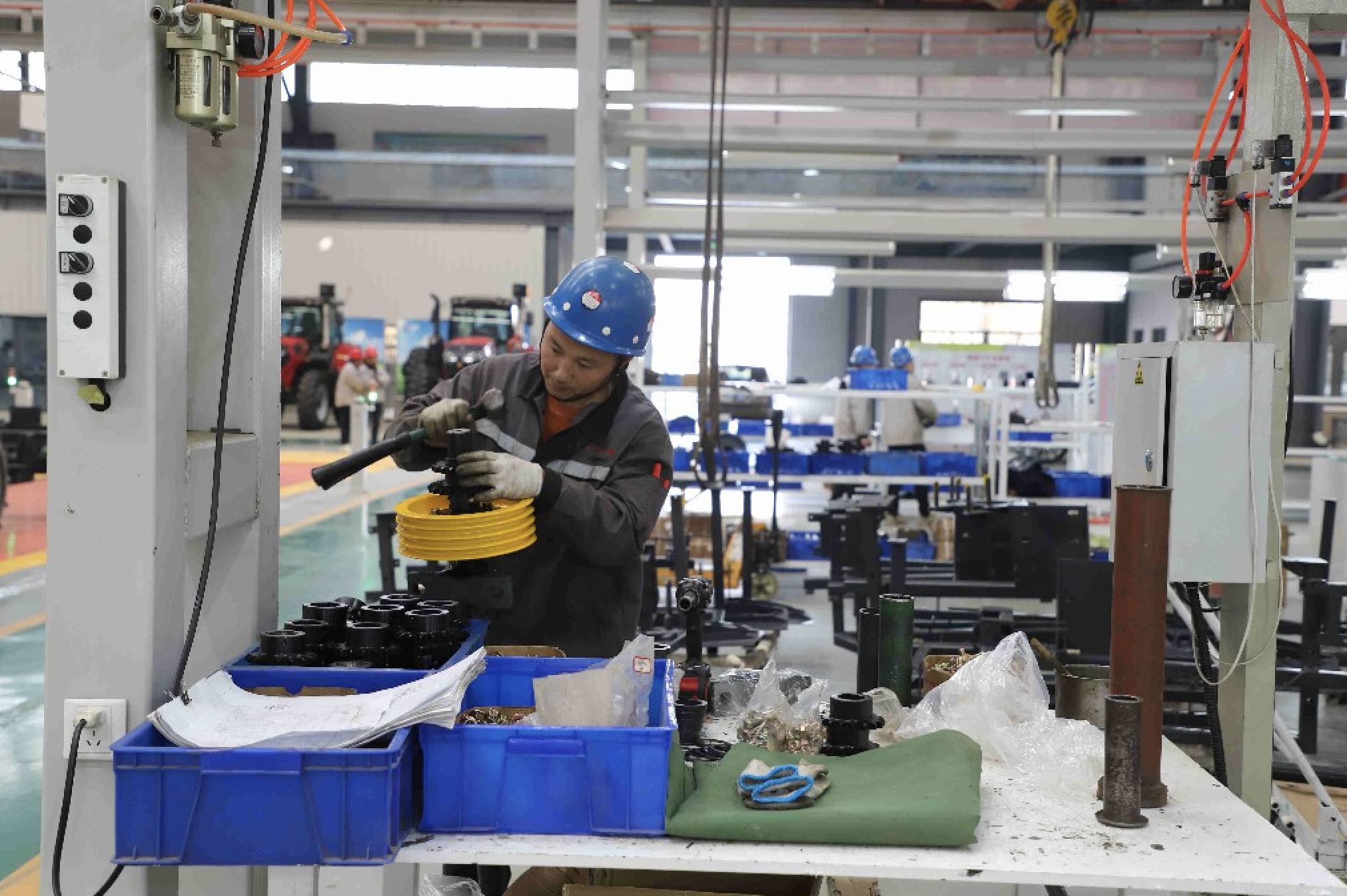 近日,山東江華機械制造有限公司生產車間,工人正在流水線上有序作業。該公司是單縣一家專業從事農業機械研發、制造、銷售與服務的省級高新技術企業,近年來,持續推動產業升級,從傳統農業機械生產逐步向智能化、高端化方向轉型,可實現年產大型智能玉米收獲機、大馬力智能拖拉機、智能水稻收獲機等農業機械3萬多臺。