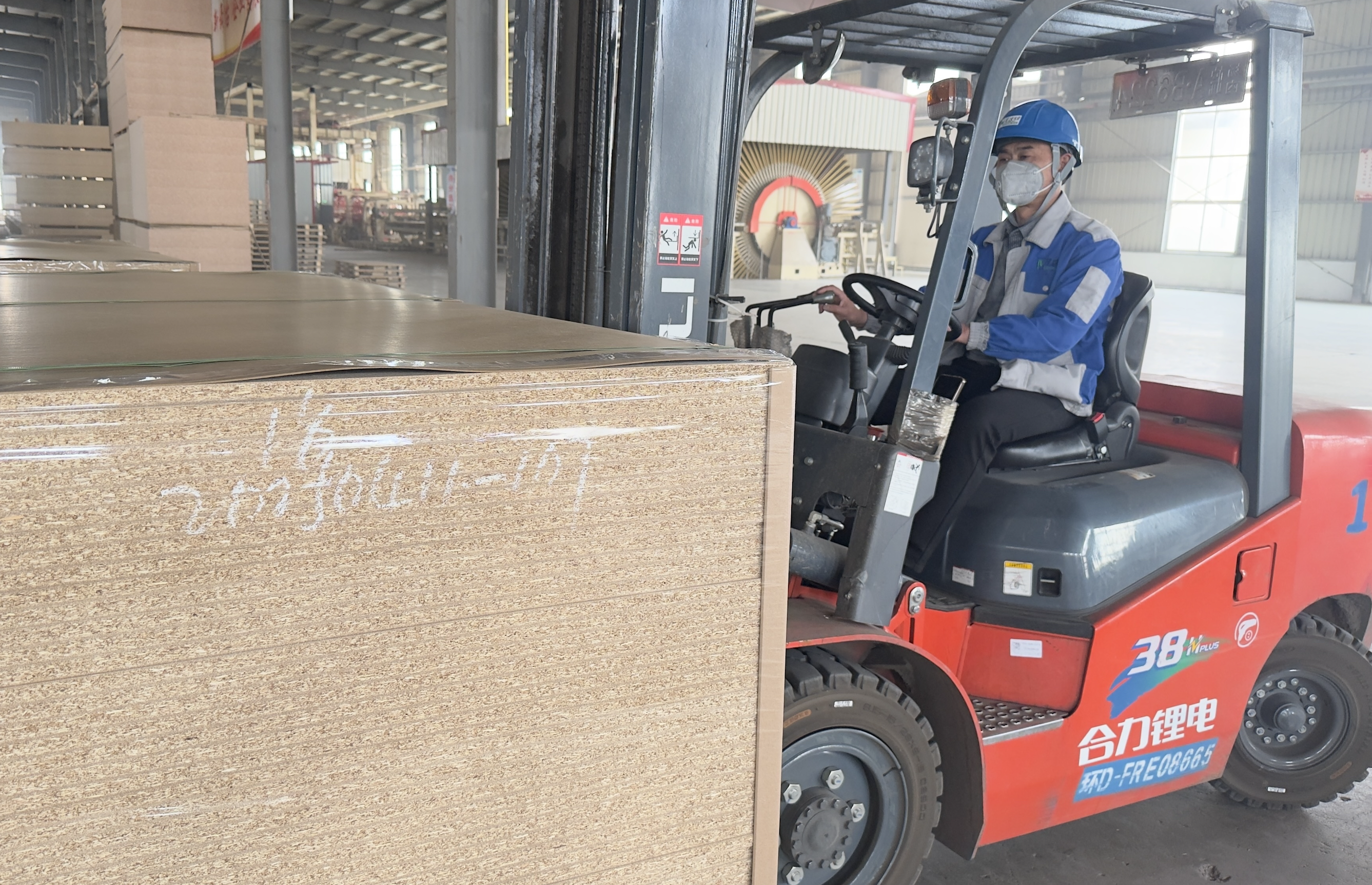 4月11日,菏澤茂盛木業有限公司倉儲園區,工人正在將打包好的板材產品整齊碼放至成品區內。該公司是曹縣莊寨鎮一家木材深加工企業,主要生產普通刨花板、超厚刨花板、阻燃刨花板、NAF級刨花板等,擁有多條先進的多層自動化刨花板生產線。近年來,公司通過引入尖端生產設備與技術,精心打造多款高品質產品,暢銷全國主要省區,并出口到北美、歐洲、東南亞等幾十個國家和地區。