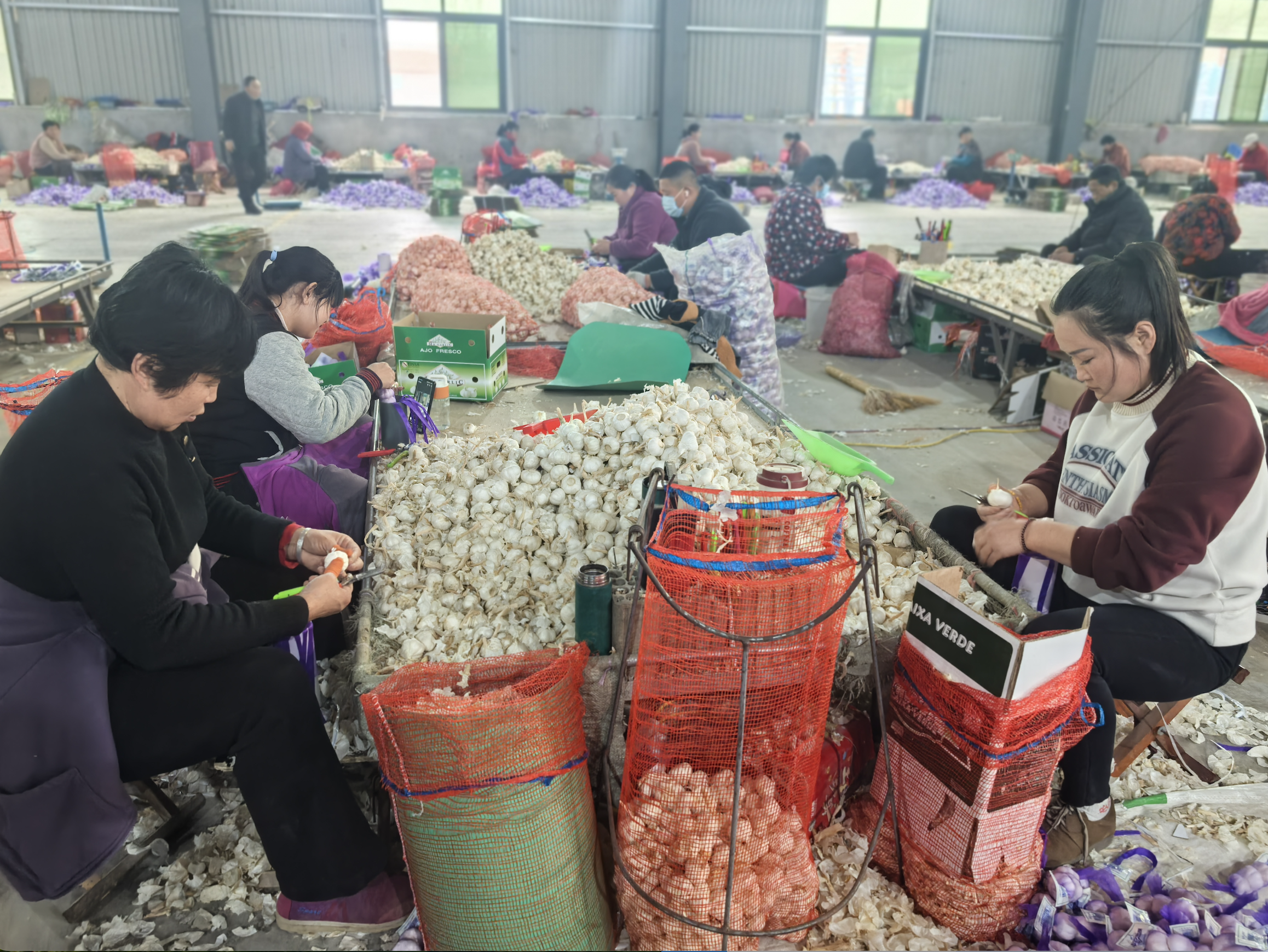 日前,成武縣大田集鎮李廟行政村豐聚果蔬有限公司加工車間,工人正在將大蒜分揀、稱重、裝箱,包裝好的大蒜將發往海外市場。據了解,該公司成立于2023年6月,是一家集大蒜種植、加工、銷售于一體的農業深加工企業。作為村里的“共富車間”,公司憑借優質產品和高效運營,海外訂單源源不斷,年出口額達5000萬元,吸納150名村民就業。
