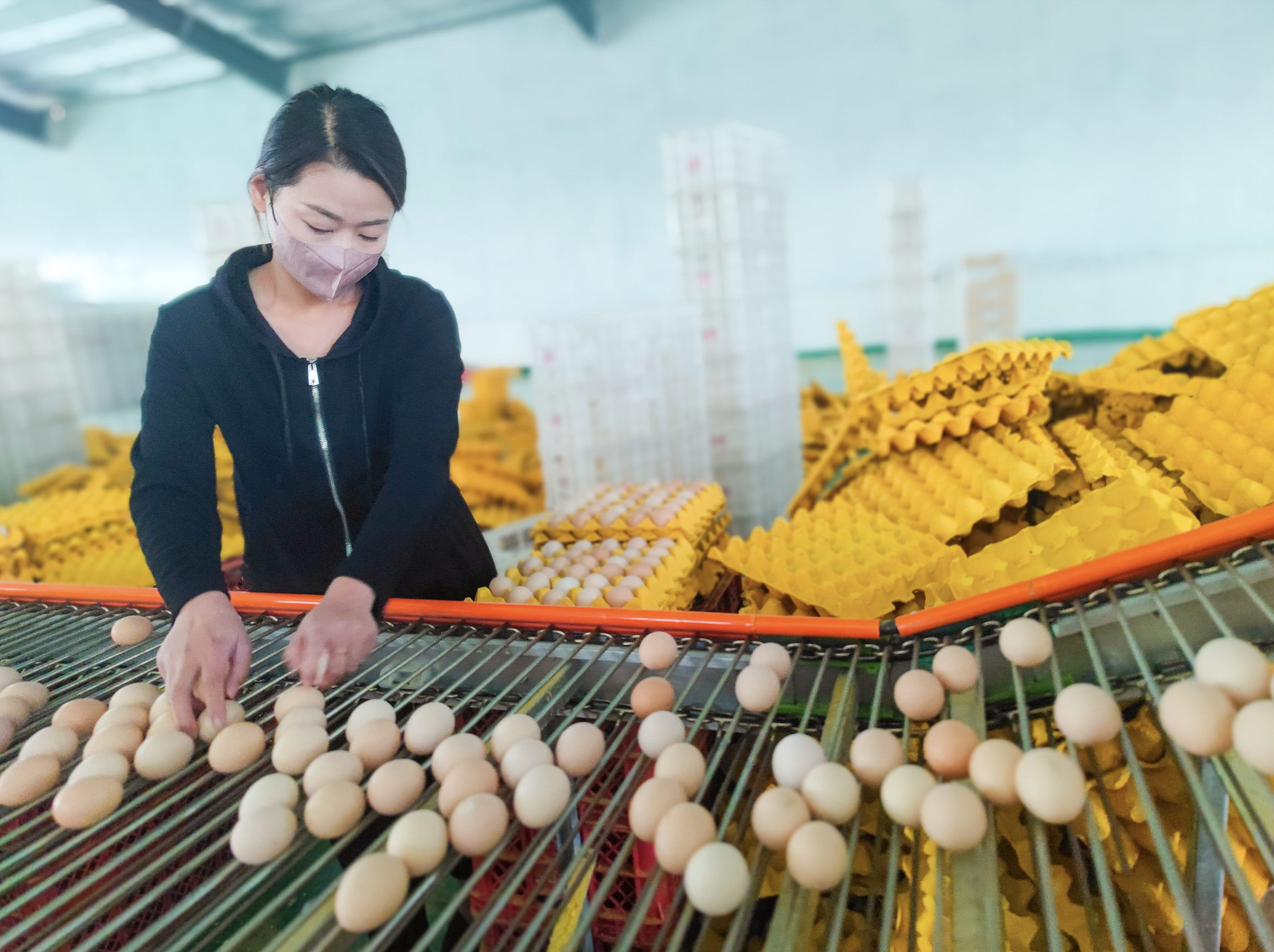 4月23日,在鄆城縣楊莊集鎮前孫莊村的山東省農科院蛋雞智能化生態養殖基地,工人們正在自動化生產線上分揀雞蛋。該基地占地80畝,蛋雞存欄量達100萬只,設有飼料加工、育雛育成、產蛋及雞糞無害化處理區。通過智能化環境控制與自動化系統,實現喂料、清糞到雞蛋收集的全流程自動化,大幅提升了生產效率。