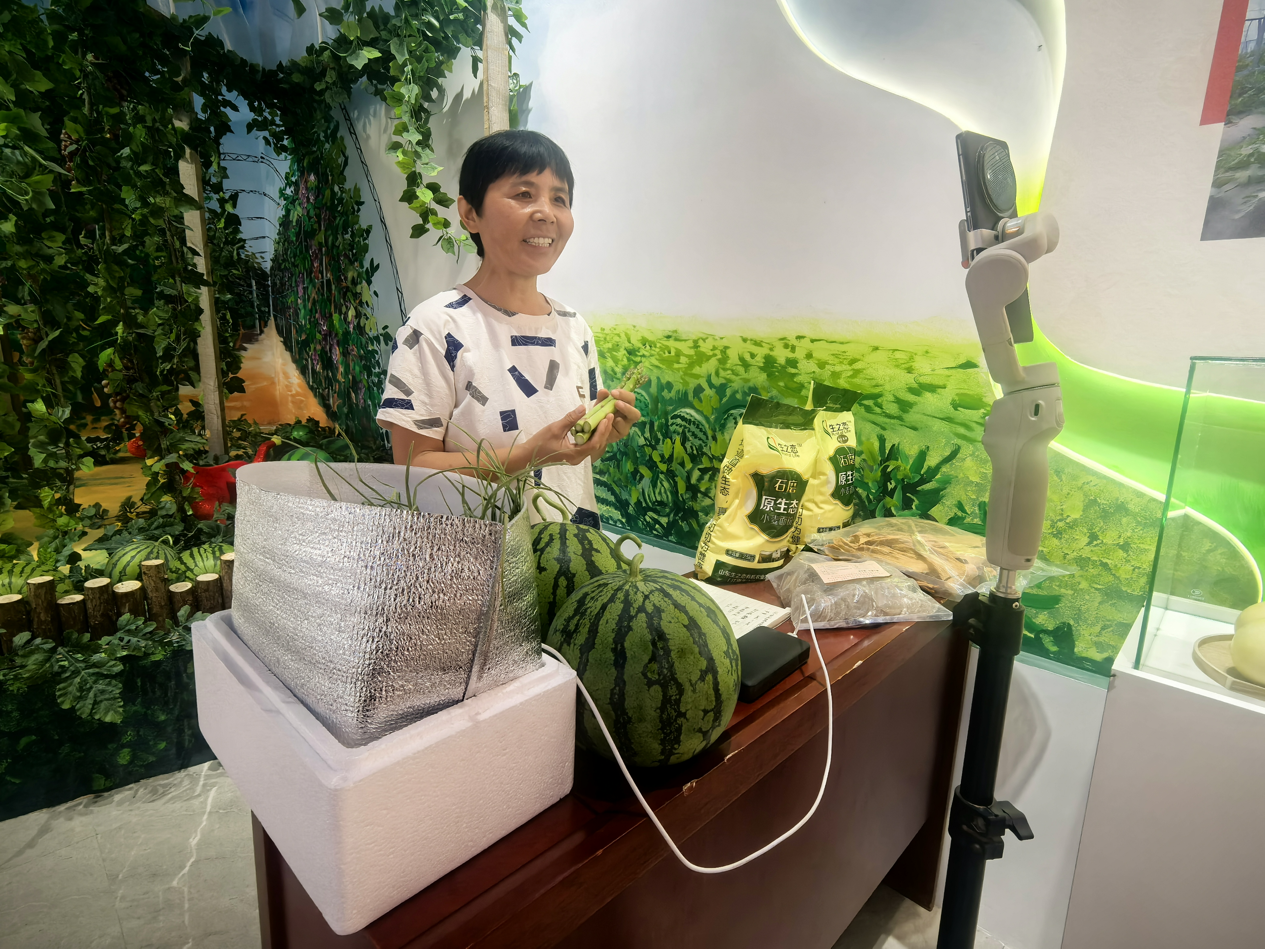 5月15日,在曹縣青崗集鎮江海村鄉村振興產業園內,瓜農正通過直播推介本地西瓜。近年來,該村探索“規模種植+特色工藝品加工+文旅融合”三位一體發展模式,整合農業、手工業與鄉村旅游資源,形成產業聯動效應。該村通過規模化發展西瓜、葡萄等特色水果種植,帶動周邊村莊協同發展,不僅拓寬了農產品銷路,助力村民增收,還為鄉村振興注入了活力。
