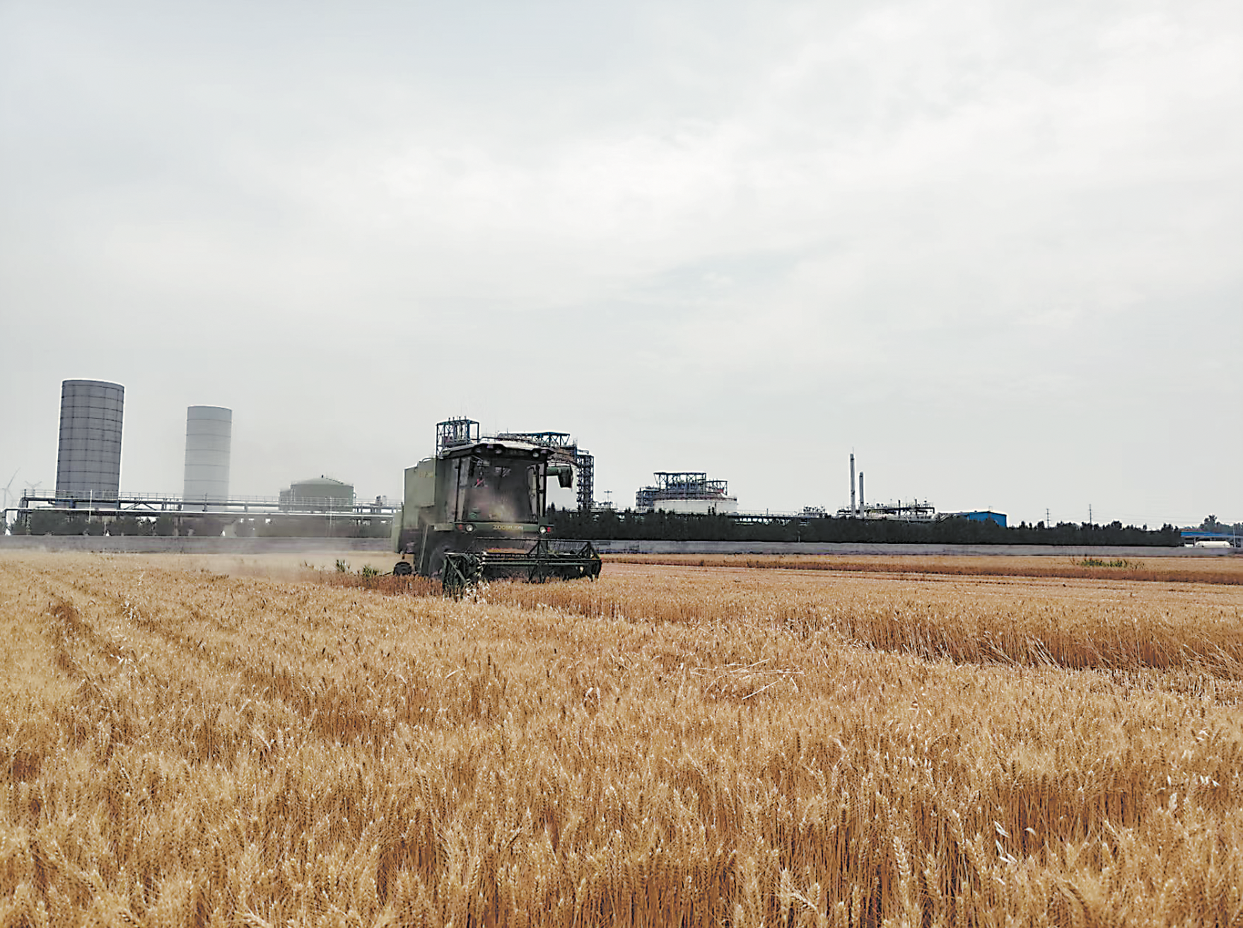 走進村頭的麥田,金黃的麥穗隨風搖曳,大型收割機開足馬力,在麥田中忙碌穿梭。收割機駛過,田里只剩下被打碎的秸稈。當收割機開到地頭時,開著農用車等待的麥田主人趕緊把自家收獲的小麥裝袋裝車。