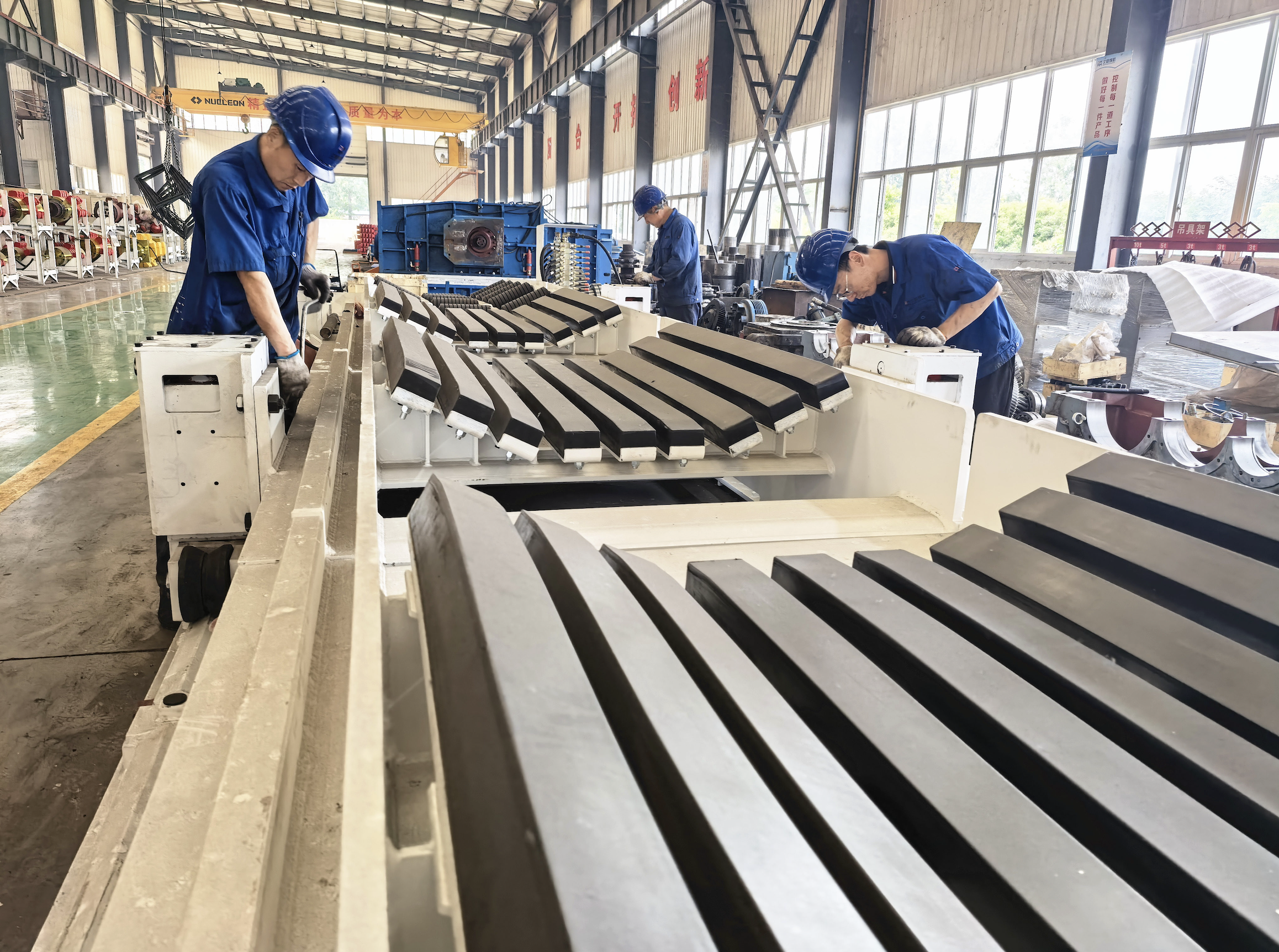 6月13日,山東九鼎開元煤礦機械有限公司生產車間,工人正在安裝煤礦綜采設備。該企業是單縣一家專注于煤礦綜采設備研發制造的國家級高新技術企業,研發出國內首套“集成化永磁電機驅動的全智能高可靠性刮板輸送機成套裝備”,顯著降低了驅動部的整機重量、結構尺寸,采用全智能聯動控制,可實現故障的智能識別與處理。目前,該企業擁有25項專利,部分產品填補國內空白,產品市場占有率在全國位居行業前列。
