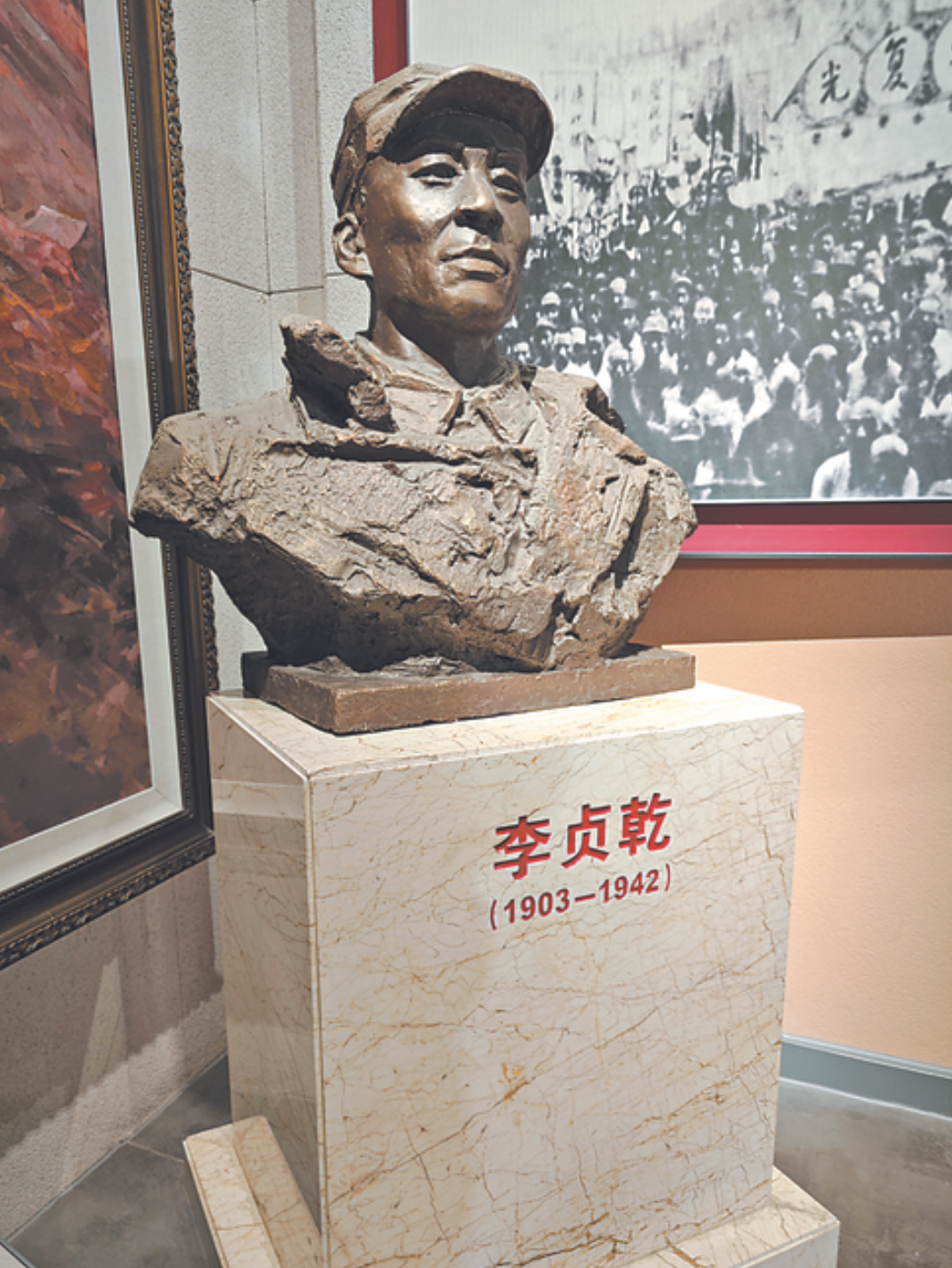 李貞乾是湖西抗日根據地的創建者之一。他把群眾當成家人親人,體察民情、解除民憂,深受軍民愛戴。紅色湖西教育基地內有一幅名為《血灑馬橋》的油畫,描述了李貞乾率部突圍的場景。這幅油畫由王海鵬于2020年創作。