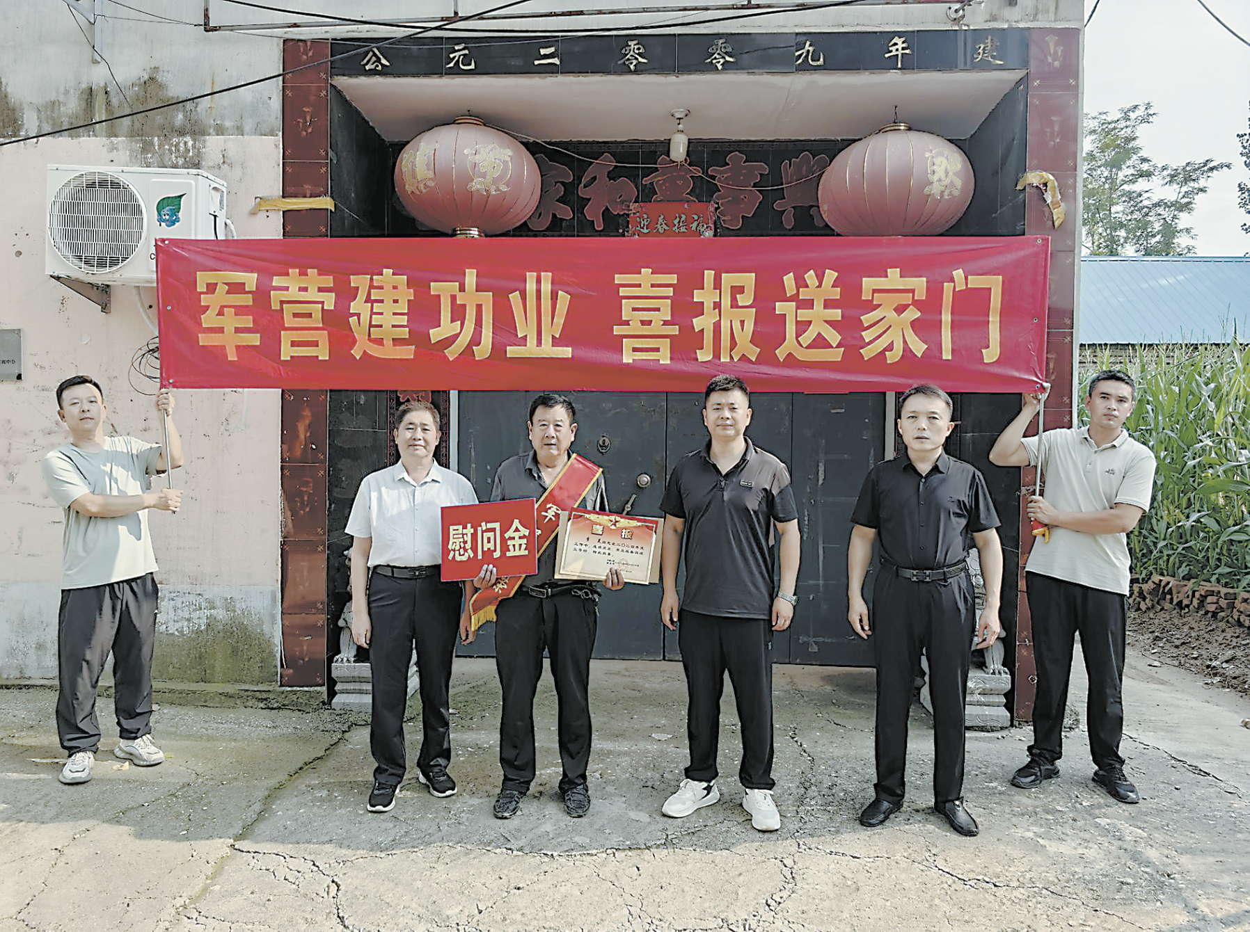 近日,定陶區退役軍人事務局聯合馬集鎮,為馬集鎮前范村榮立三等功的現役軍人李昊家庭送上喜報。儀式現場,“軍營建功業 喜報送家門”的橫幅格外醒目,尊崇之情撲面而來。為現役軍人家庭送喜報,正是定陶區尊崇軍人、厚植家國情懷的生動縮影。這一舉措,既激勵現役軍人安心服役、再立新功,也增強了退役軍人及家屬的榮譽感,更為定陶區雙擁工作邁上新臺階注入動力,凝聚起軍民同心向黨的強大力量。