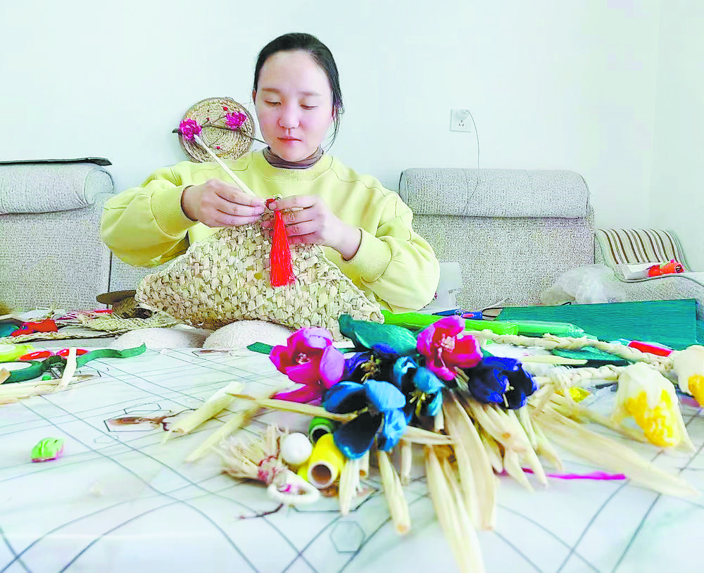 玉米皮在農村很是常見,過去都是當柴生火做飯。“巧手姑娘”張雨浠自從學會了編織,她家的玉米皮也由廢物變身為寶貝,成了庭院經濟增收項目。作為這一傳統文化的手造者、傳承人,張雨浠在隨心所欲的編織勞動中,獲得的是幸福的向往。“點‘皮’成金,變廢為寶,我編織的是美好生活!”張雨浠高興地說。