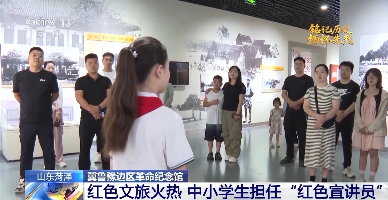 正值暑假,這里的紅色文旅十分火熱。據統計,2024年,冀魯豫邊區革命紀念館全年共接待游客超86萬人次,開展紅色教育活動覆蓋中小學生5萬多人次。菏澤市委講師團利用暑假時間,培訓中小學生擔任“紅色宣講員”,可以讓孩子們在講述革命歷史的同時,潛移默化接受紅色教育。
