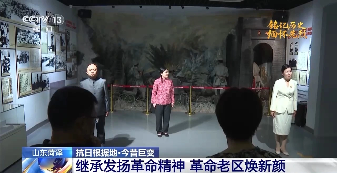 80多年過去了,革命前輩們的精神在冀魯豫大地上得到了繼承和發揚。正在紀念館里表演的,是菏澤市鄆城縣抗日紅色情景劇《親娘》,講述鄆城數十位乳娘哺育、養大革命遺孤的感人故事。現在,菏澤市每年演出紅色短劇、情景劇等270余場次,進行紅色宣講400余場次,深受廣大干部群眾喜愛。