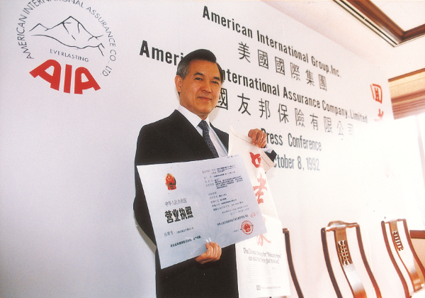 這張謝仕榮手持“中華人民共和國營業執照”的照片,拍攝于1992年友邦保險上海分公司開業典禮上,照片呈現的是中國政府發給外資保險機構的第一張牌照。這張無比珍貴的牌照,承載著友邦的回歸夢,也證實了其渴望助力中國保險市場繁榮發展的信念和對中國市場的堅定信心。