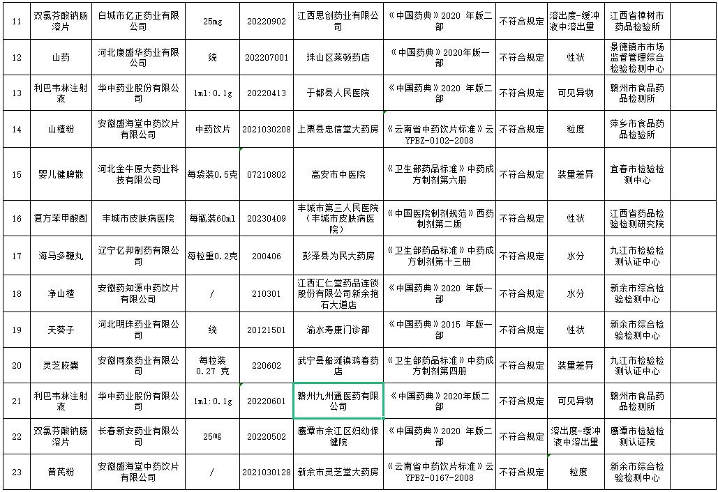為加強(qiáng)藥品質(zhì)量監(jiān)管,保障公眾用藥安全,根據(jù)《中華人民共和國藥品管理法》及相關(guān)法律法規(guī)和江西省藥品抽檢計(jì)劃,我省各級(jí)藥品監(jiān)管部門和檢驗(yàn)機(jī)構(gòu)對(duì)全省藥品生產(chǎn)、經(jīng)營和使用單位實(shí)施了監(jiān)督抽檢。現(xiàn)將本期藥品抽檢信息通報(bào)如下: