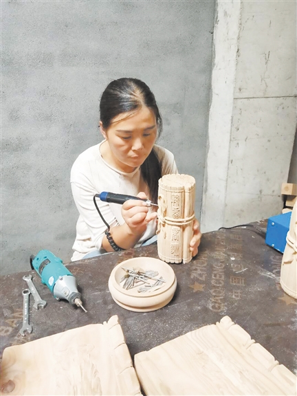 考察過聶延英夫婦的木雕作品及工作環境后,當地政府提出,愿意無償提供場地給兩人做工作室。“搬過去后,想招收一些學徒,讓一些作品實現量產。這些年,木雕也從一門手藝變成了我的事業。”聶延英說,她還是會繼續精進個人技藝,也希望能給予孩子更多陪伴。