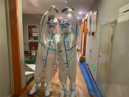 “留驗站高峰期人數能達到八九十人,每天清理幾百斤的垃圾,不間斷在各個點位進行消殺,尤其是這幾天高溫時,要穿著防護服在樓層之間穿梭、忙碌,衣服始終沒有干過,一天下來,累得飯都不想吃。”醫護人員于發茹說。