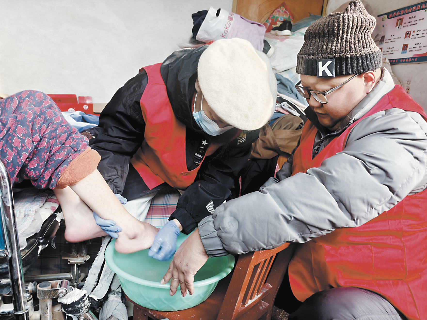 嚴珊珊因意外造成癱瘓,大多時間不得不躺在床上。當天,其母親為她選擇了按摩、洗腳等多項服務項目。“平時都是我一個人照顧,他們來了,我輕松了很多,他們比我專業,真是謝謝他們了。”嚴珊珊的母親石女士說。
