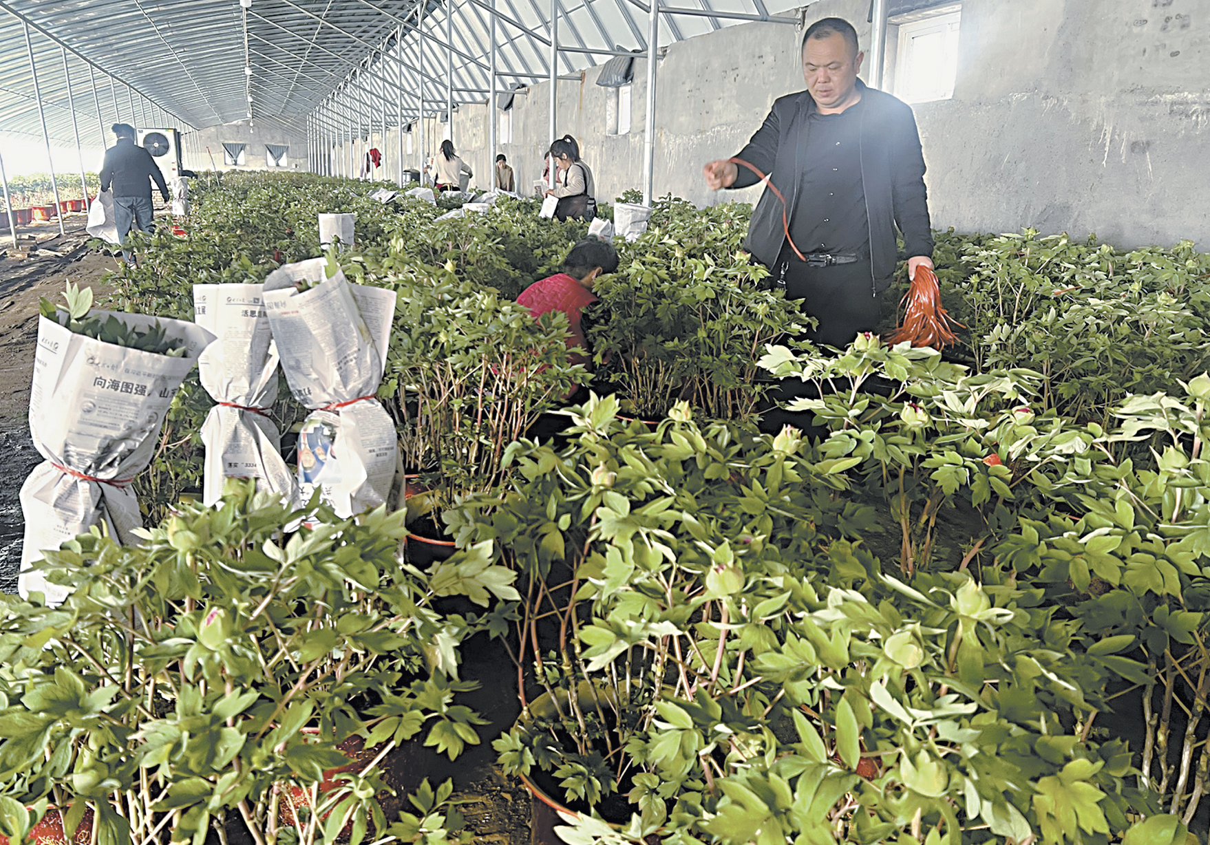 “牡丹區為《國色芳華》劇組提供了2570盆反季節催花牡丹,由我們公司負責培育。”趙文雙介紹,“這些牡丹是從我們現有的1308個品種中,優中選優、精挑細選出來的,比如綠幕隱玉、紫二喬、趙粉、富貴滿堂等30多個品種。”據了解,2024年4月7日到7月7日,菏澤花王牡丹產業園共為《國色芳華》劇組培育了5個批次、8車反季節催花牡丹。