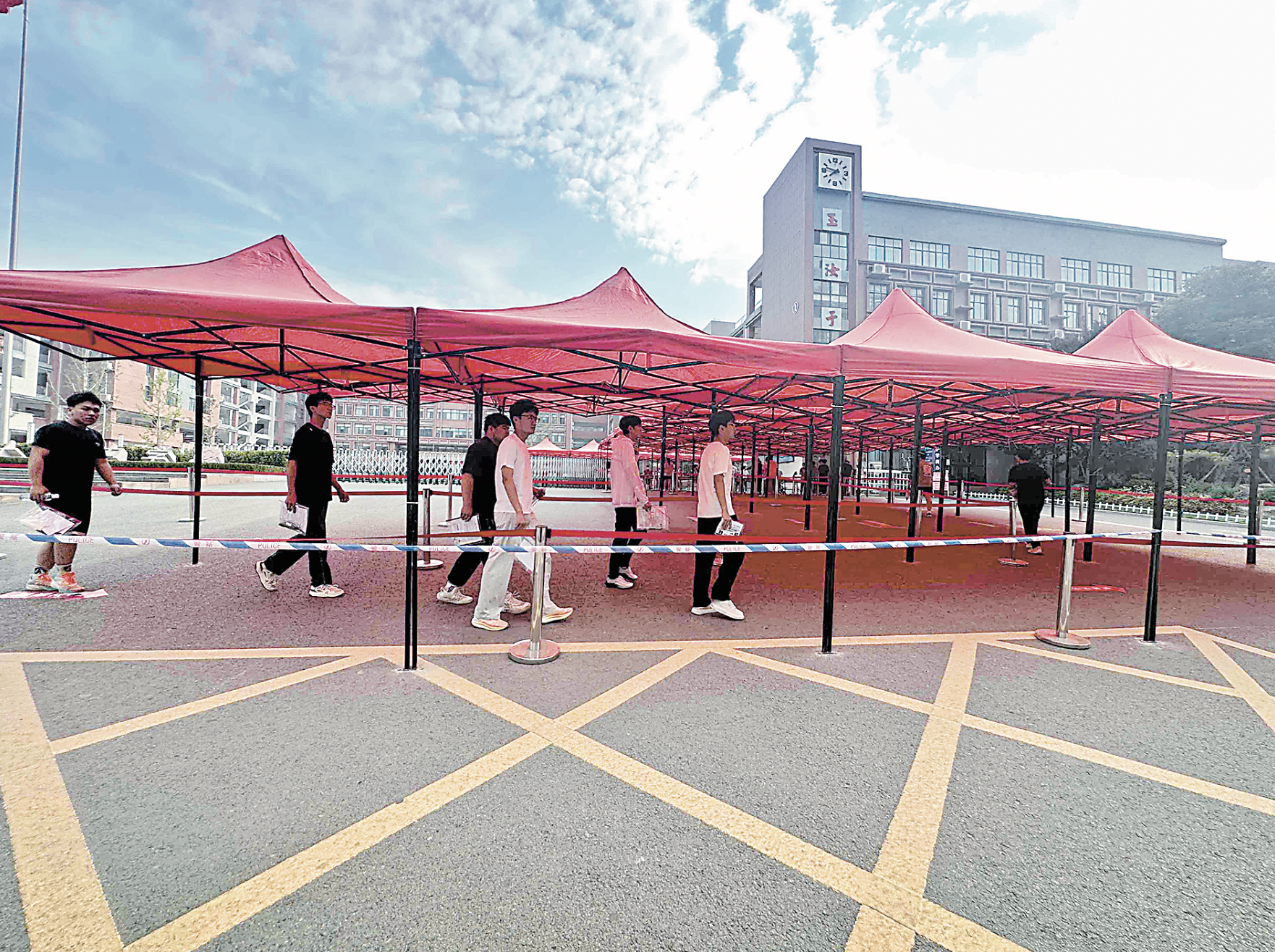 牡丹晚報全媒體記者在現(xiàn)場看到,各考點入口均設(shè)置了寬敞的通道、遮陽遮雨棚及考生物品放置專區(qū)。