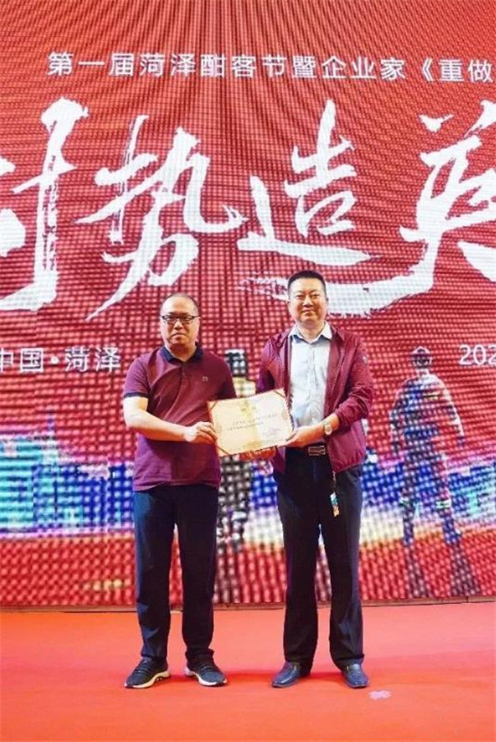 在菏澤酣客節上,市工商聯副會長王新勇上臺致辭,并為酣客創始人王為頒發“菏澤市中小企業協會企業專家智庫特聘經濟專家”證書。
