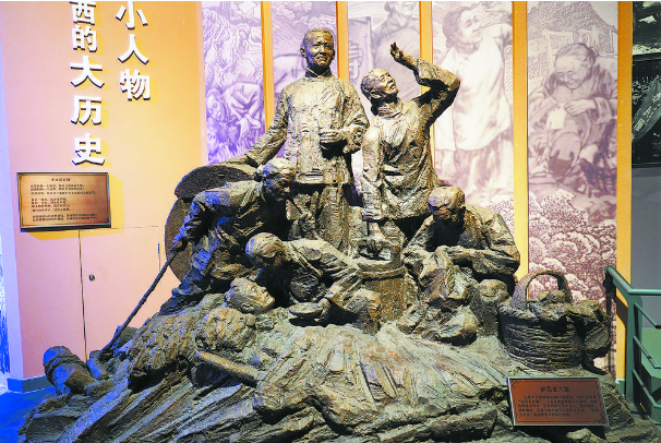 展廳復(fù)原了1943年,時(shí)任湖西專員的郭影秋在田間為老百姓拉犁的情景。