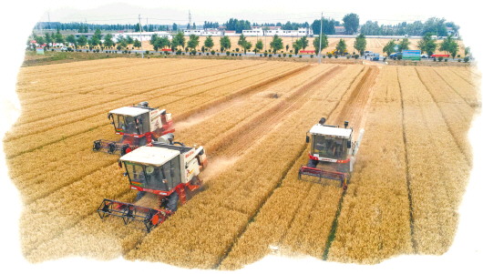 今年6月,滕州市級索鎮龍莊村農業合作社農民收獲小麥。(□王德琬宋海存報道)