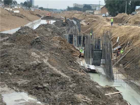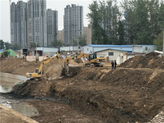 10月12日,在洙水河市長(zhǎng)沙路與濟(jì)南路段的菏澤開(kāi)發(fā)區(qū)丹陽(yáng)辦事處仝莊廣場(chǎng),牡丹晚報(bào)全媒體記者看到,挖掘機(jī)正在進(jìn)行河道清淤,不少工人正在忙碌著,建設(shè)河底擋墻、污水管道鋪設(shè)等都在有序進(jìn)行中。