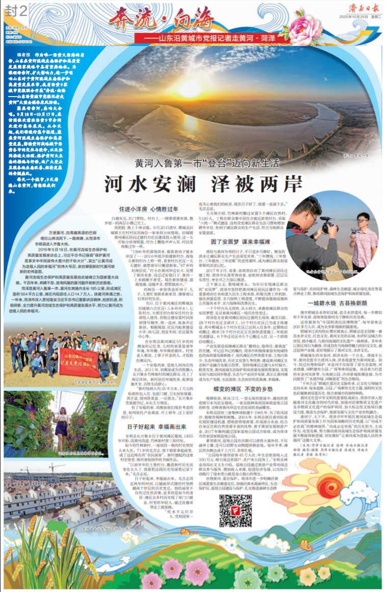 編者按作為唯一沿黃又沿海的省份,山東在黃河流域生態保護和高質量發展國家戰略中具有重要地位。為歌頌母親河、擴大影響力,進一步唱響山東對于黃河流域生態保護和高質量發展樂章,我省沿黃9家城市黨報聯合開展“奔流·向?!綎|沿黃城市黨報記者走黃河”大型全媒體采風活動。
