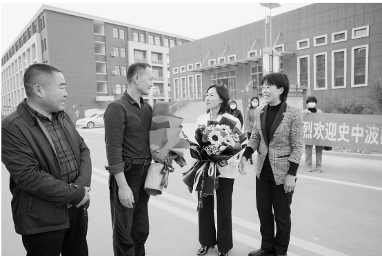 讓他意外又驚喜的是,自己一直牽掛著的學生正列隊在校門口迎候,為他鼓掌、喝彩;成武縣教育局局長馬華武、紅十字會黨委書記王霞、衛(wèi)健局工會主席方禮艷等也手捧鮮花,與他握手致意。那一刻,盡管他已身心俱疲,內心卻無比溫暖。