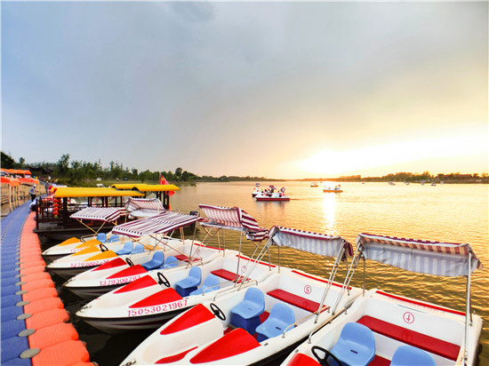 11月1日,恰逢周末,秋色正好。在城區七里河濕地公園項目一期現場,不少家庭來此休閑娛樂,乘坐游船欣賞秋日美景。項目啟動以來,原來的小河已經大變樣,憑借著如今的“高顏值”,七里河已經成為城區北部一大地標,不僅讓市民多了一個休閑好去處,還吸引周邊縣區群眾自駕來這里親水游玩、拍照打卡。牡丹區牡丹街道楊莊社區的陳兆記指著停靠河邊的游船說:“游船項目屬于我們村的集體經濟和扶貧項目,每年收入近110萬元,不僅發展了村集體經濟,而且帶動了周邊村民家門口就業,增加了群眾收入。”