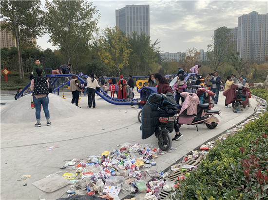 “我不希望孩子的童年記憶里,有在垃圾堆里玩耍的經(jīng)歷?!奔易『蕽沙菂^(qū)人民路公園一號小區(qū)的陳先生向記者反映,趙王河公園內(nèi)建起許多兒童游樂設(shè)施,吸引了不少家長帶孩子游玩,但兒童樂園尚未完工,卻人滿為患,垃圾遍地。