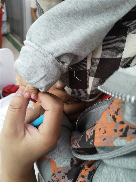 曉雨出生于今年4月。據(jù)其父母介紹,他出生時右手拇指復(fù)拇指畸形,隨著時間的推移,右手拇指及多指增大。“考慮到孩子長大后會因?yàn)檫@種情況自卑,經(jīng)過咨詢相關(guān)專家,我們決定盡早為孩子矯治。”曉雨的父母說。