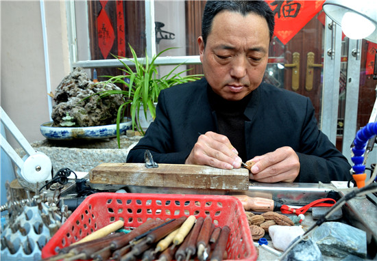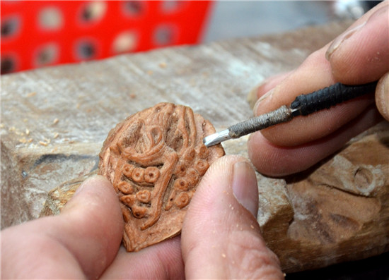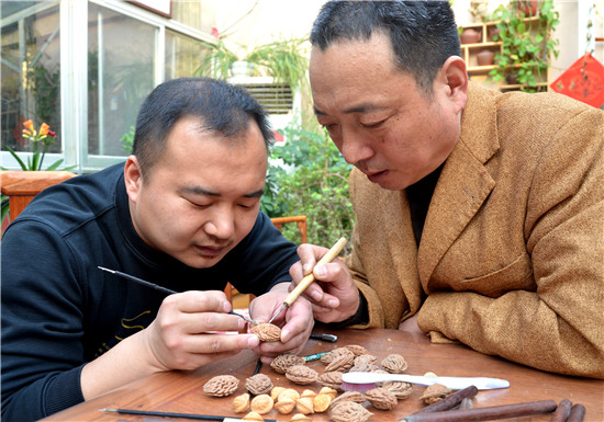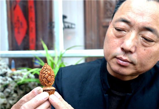 陶丘核刻技藝傳承主要靠口耳相傳,父傳子,世代承襲,由于技法的難度較高,核刻技藝鮮有傳人。第八代傳承人張長路承襲了舅舅“陶丘核刻許”許中允的傳統(tǒng)刀法,熟練掌握了二十多種雕刻技藝,完整地保留了陶丘核刻技藝的獨(dú)特性。他尤其擅長在各種果核上刻畫人物、花鳥、神獸,刀法流暢,作品細(xì)膩古樸,情趣盎然。他的創(chuàng)作題材主要以歷史名人及民俗傳說為主,多次在國家、省級專業(yè)大賽上榮獲金獎。 文 /圖 記者 時蘇建