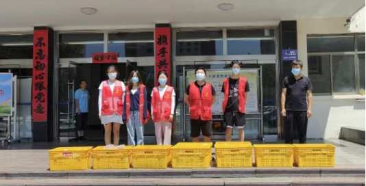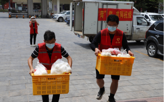 他們籌集資金租下一間廠房,每天早上6點半準時開始制作午餐,他們開來了自己的汽車,又借來兩輛小貨車作為運輸工具,中午十一點半準時送到丹陽辦事處和社區工作者的手中。不僅如此,他們還為前線工作者捐贈了20筐共3000斤水果,極大地助力了抗疫后勤保障工作。