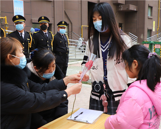3月6日,在一年一度的“三八”國際勞動婦女節到來之際,為了讓女同胞們感受到節日的幸福和快樂,綠地花都國際——菏澤美好嘉物業精心準備了一支支嬌艷欲滴的玫瑰花,向綠地花都國際的女業主們送上誠摯的祝福。收到祝福和鮮花,大家露出了美麗的笑容,同時對物業的暖心服務表示由衷感謝。圖為物業工作人員向一位女業主送上玫瑰花。記者 李亞楠
