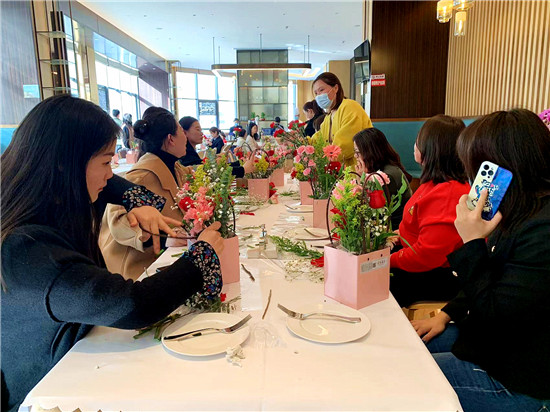 近日,天安夏威夷項目誠邀廣大客戶開啟了一場花藝之旅?;顒蝇F場,花藝師給大家詳細講解了花的種類和插花的技巧,以及插花時需要注意的層次和色彩搭配,并現場進行示范表演。在專業老師指導下,大家結合各自手中的花材特點,積極進行插花藝術創作,用靈巧的雙手完成一個個精美的插花作品。記者 李亞楠 攝