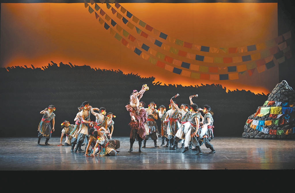 《唱支山歌給黨聽》以和平解放西藏、廢除農奴制以及建設發展西藏的歷史為大背景,圍繞“阿媽和她的孩子們”兩代人完全不同的命運展開。在舊時代的黑暗中,農奴們遭受著殘酷的壓迫,阿媽和她的孩子們生活在水深火熱之中;隨著解放軍的到來,西藏迎來了光明,孩子們的命運也被徹底改寫。該劇以藏族傳統舞蹈為根基,融入現代舞的張力與戲劇化敘事,通過“向下”的壓抑肢體語言與“向上”的昂揚舞步對比,呈現從黑暗到光明的歷史轉折。劇中有一段失明的女兒與藏族牧羊人共舞的歡快段落,感染力極強,每次上演都能引發觀眾強烈的情感共鳴。