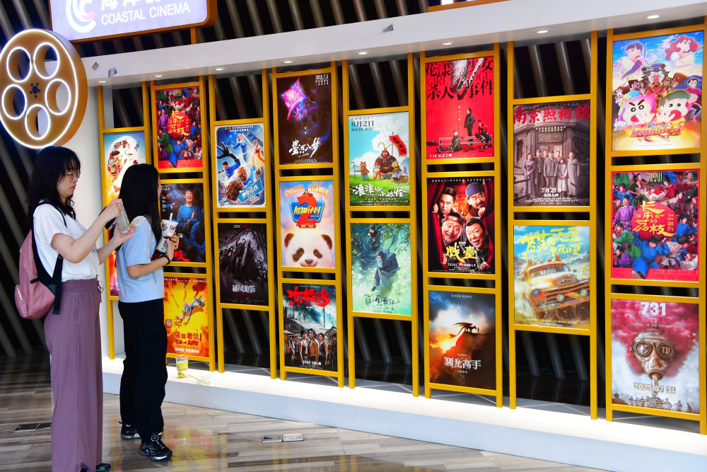 8月17日,觀眾在江蘇省無(wú)錫市一家影城的電影海報(bào)前駐足。新華社發(fā)(還月亮攝)
