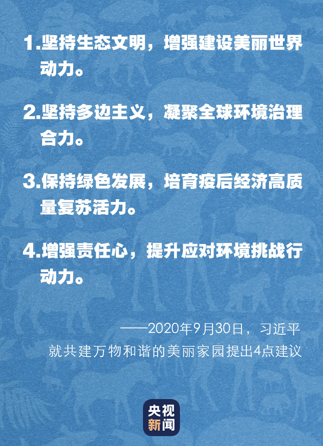 在峰會上,習近平就共建萬物和諧的美麗家園提出4點建議——