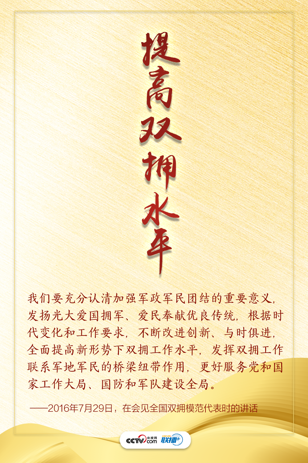 “難得舉城作一慶,愛(ài)我人民愛(ài)我軍。”軍愛(ài)民,民擁軍,最偉大的力量是同心合力。央視網(wǎng)《聯(lián)播+》為您梳理總書(shū)記講話,一起感受“軍地合力,軍民同心”匯聚起的磅礴力量。