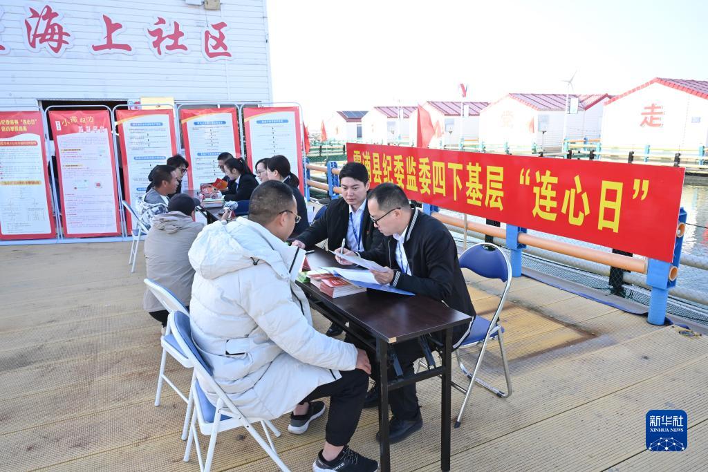 2023年11月18日,寧德市霞浦縣紀委監委工作人員在溪南鎮七星海上社區接訪。新華社記者 姜克紅 攝