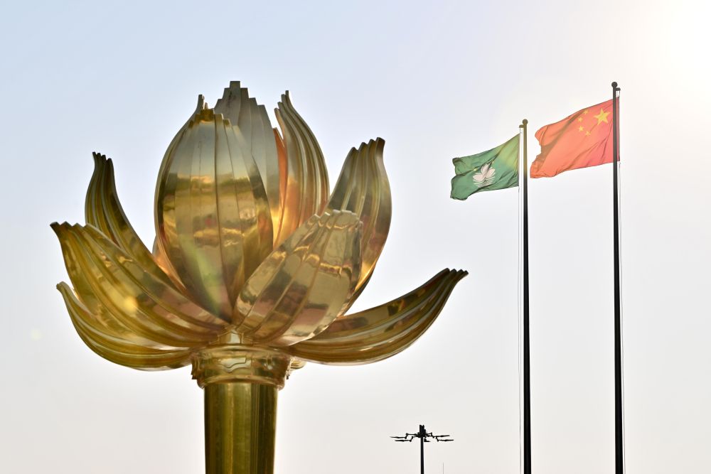 澳門特別行政區政府隆重舉行升旗儀式,慶祝澳門回歸祖國25周年(2024年12月20日攝)。新華社記者 朱煒 攝
