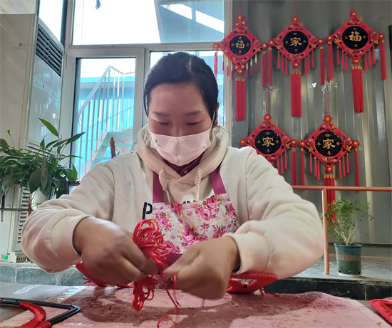 2022年6月,芃雨工藝加工點(diǎn)的中國結(jié)加工車間投入使用,吸引了周邊不少村民前來務(wù)工。翟志杰還通過“車間連戶”模式,讓群眾居家靈活就業(yè),拓寬增收渠道。“編織中國結(jié)帶動(dòng)了周邊400余村民家門口就業(yè),這份工作時(shí)間自由、靈活,深受村民歡迎。”翟志杰說。