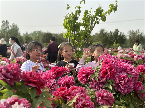 “這花好大!好香!”“你看,這朵花比剛才那朵還要大!”漫步于冠宇牡丹園中,不時能聽到游客情不自禁的贊嘆。“為了來這兒美美地賞花、拍照,我今天一早就開始盤頭、帶發飾,我和兩個孩子也都提前穿好了漢服。”來自曹縣的游客劉霞說。