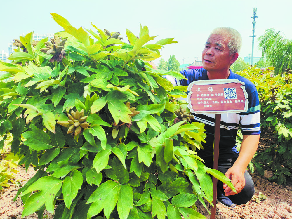 “‘文海’牡丹是2005年前后開始培育的,2017年由中國花卉協會牡丹芍藥分會審核登錄。”7月11日,孫文海看著眼前的“文海”牡丹說,這棵牡丹高約1米,長勢旺盛,位于曹州百花園西北角。