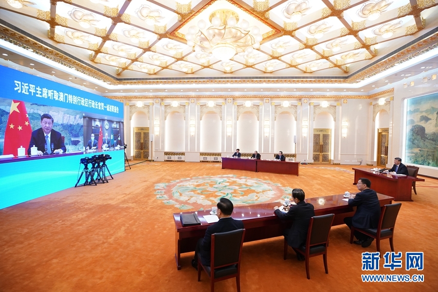 1月27日,國(guó)家主席習(xí)近平在北京以視頻連線方式聽取了澳門特別行政區(qū)行政長(zhǎng)官賀一誠(chéng)2020年度的述職報(bào)告。新華社記者 鞠鵬 攝