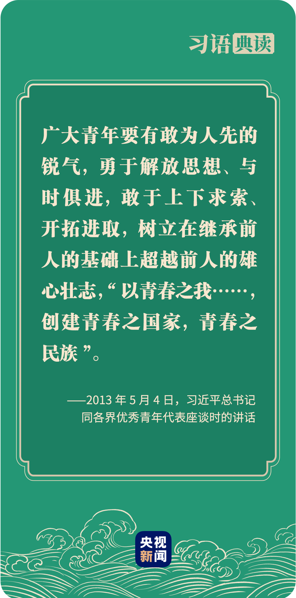 2013年5月4日,黨的十八大后的第一個五四青年節。習近平總書記與各界優秀青年代表座談時,勉勵大家:“要有逢山開路、遇河架橋的意志,為了創新創造而百折不撓、勇往直前。”
