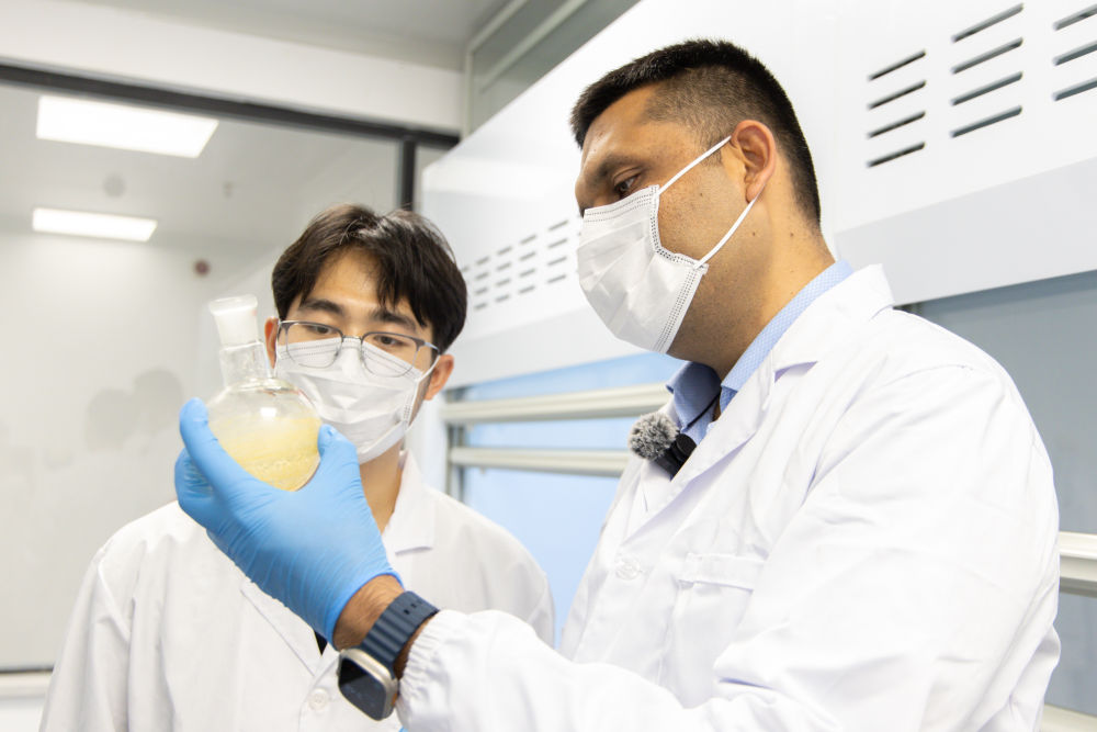 今年37歲的穆罕默德·沙巴茲來自巴基斯坦,目前在國內一家核醫療科研企業,從事精準放射治療技術的研究推廣工作。2006年,沙巴茲從巴基斯坦來到中國學醫,至今已在中國生活了近20年。在中國工作期間,沙巴茲搭建平臺幫助巴基斯坦學生來華求學,同時也邀請中國專家到巴基斯坦進行指導,為推動中巴在醫學教育、科研及數字醫療等領域合作貢獻著青年力量。這是2025年7月29日,沙巴茲(右)與同事在實驗室內交流。