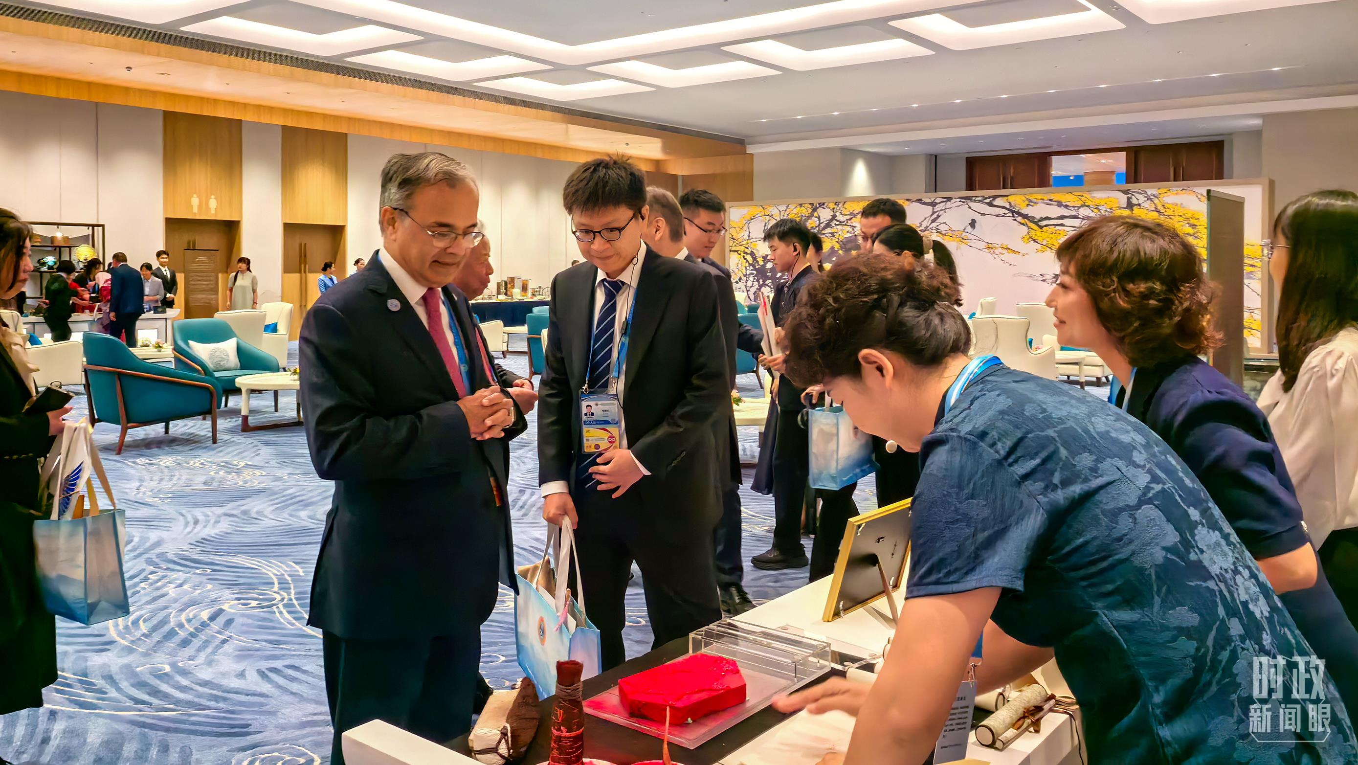 △國際貴賓參觀天津非物質(zhì)文化遺產(chǎn)展示。(總臺央視記者王子杭、姚瑤拍攝)