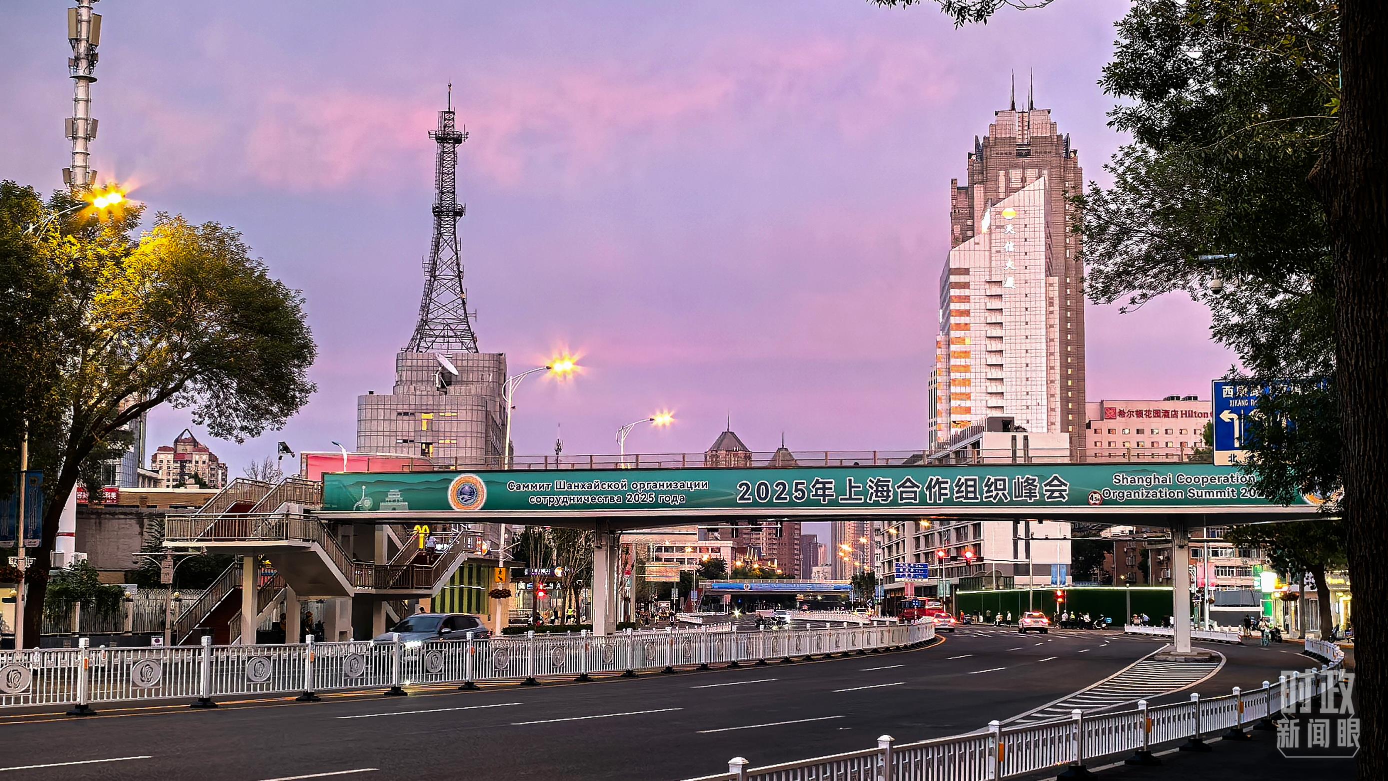 △天津街頭的上合峰會條幅。(總臺記者孫強(qiáng)拍攝)