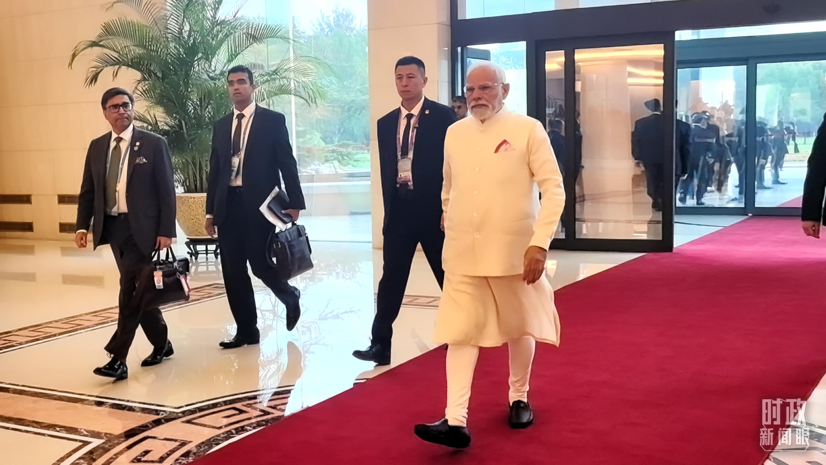 △印度總理莫迪步入會見廳。(總臺央視記者范凱拍攝)